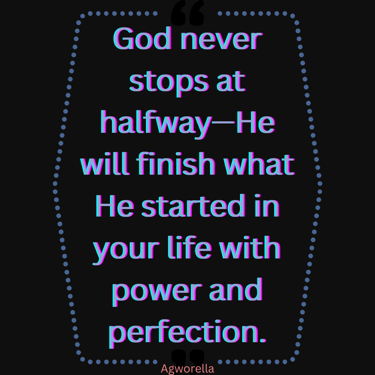 Stay the course. Trust the process. The Author and Finisher of your faith never leaves a masterpiece undone.