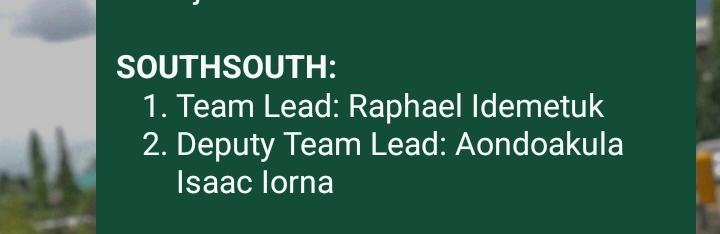 • That's not all I'm also privilege to be your Deputy team lead for South South for the nearer expansion project